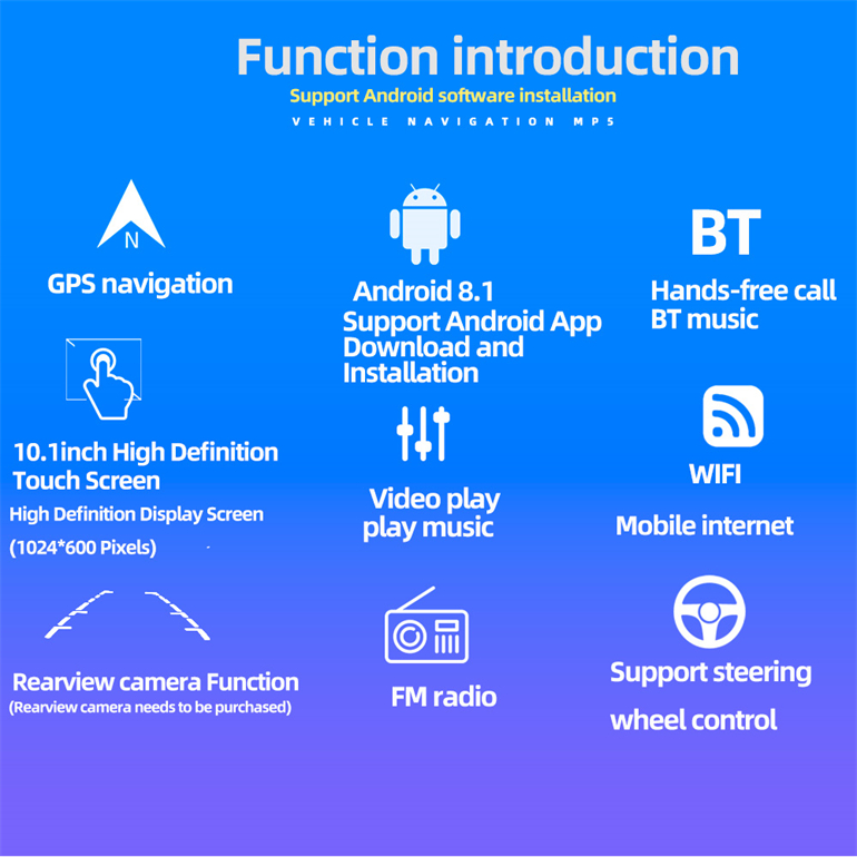 ♦ Built-in Bluetooth function, phone book and A2DP BT music.