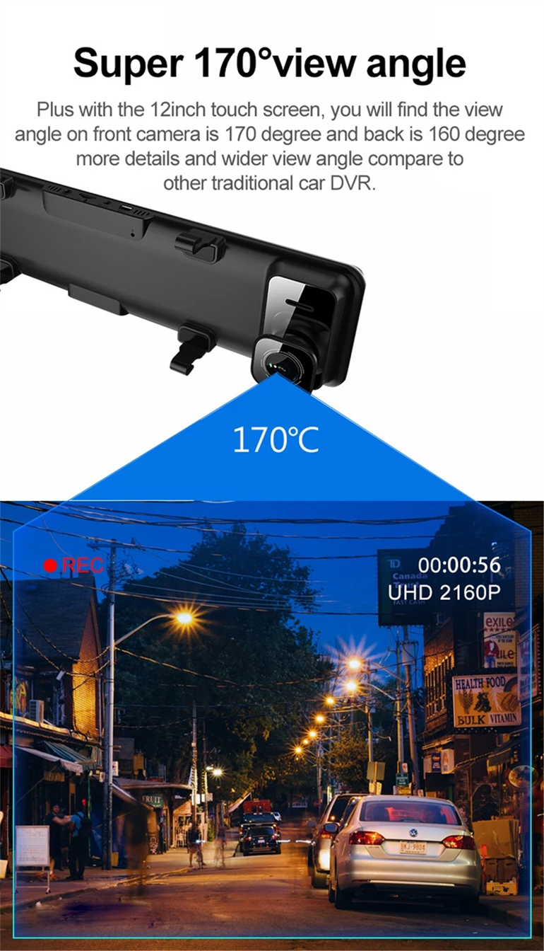 2k dash cam 1440P dual lens dashcam 12 Inch rearview mirror car dvr HD display front And rear